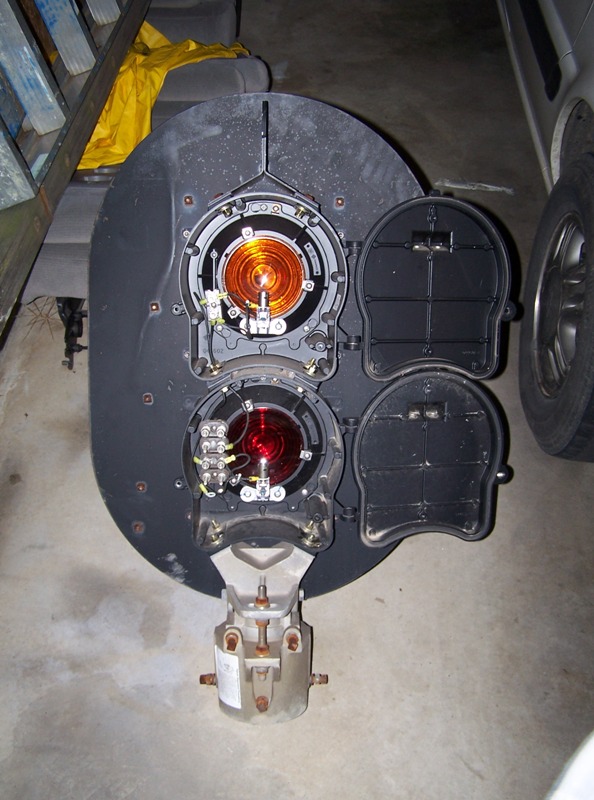Taking a look inside with the doors open and showing the lenses and the sockets that have never had bulbs installed in them!