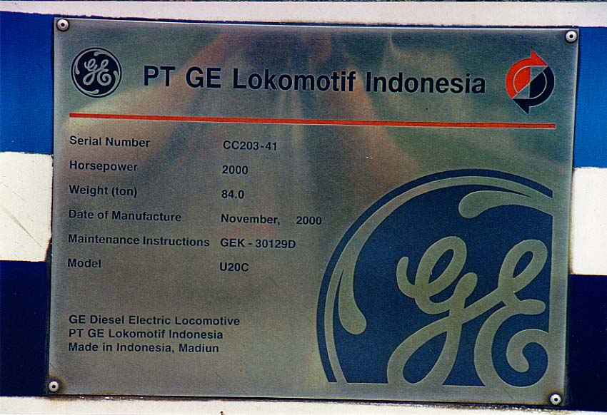 The builder plate of CC203-41. All of the new CC203 locos are equipped with this kind of plate, but some might have been stolen when they went for major overhaul. Pressumably stolen by wandering people or wayward mechanics. The reflection of author's face is partially visible. |