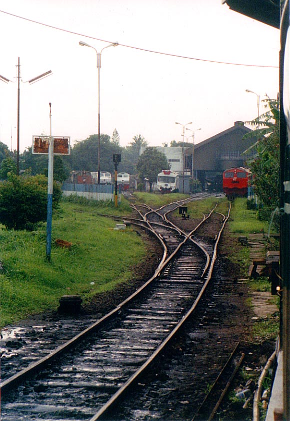 The view of Bandung station during one cloudy afternoon. A diesel railcar on the right is used for commuter service around Bandung and the surrounding plains. |