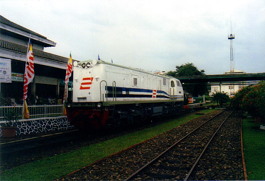 Another view of the same loco. The building beside the loco is the 'new' Bandung station. Whereas the pedestria path in front of it connect the main station building with the platform and the old station. |