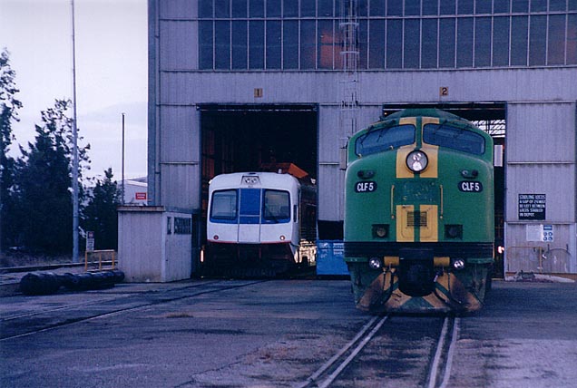 view of CLF 5, with Prospector railcar in EDI shed in the background.