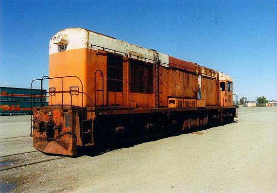 D48 loco is one of a few non-National Rail locos which is stabled in Kewdale. It's owned by South Spur Railway. The loco is powered by "English Electric" engine. The loco started its life as Goldsworthy Mining loco, used in Pilbara. It used to compete against big American and Canadian built Alcos, before moved to southern Australia, when Goldsworthy was merged with Mt. Newman to form BHP Iron Ore. |