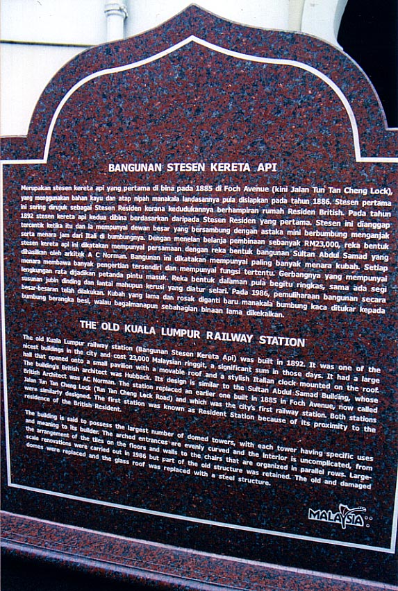 The station, which is located on right in the downtown area of Kuala Lumpur was once the main station of Kuala Lumpur, where all of the Kuala Lumpur-bound trains stopped.