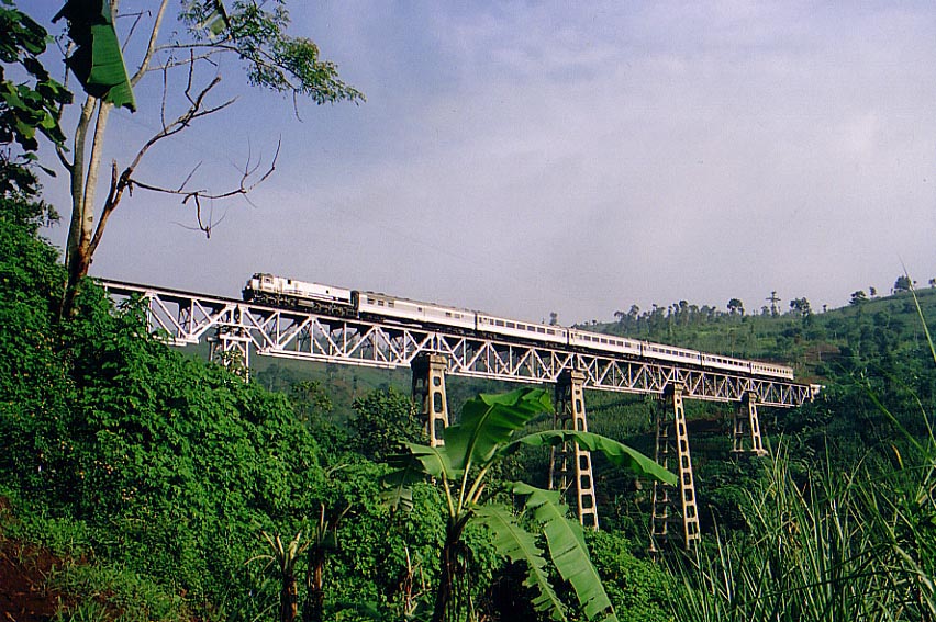 Wilis train is seen crosses the bridge. Note a second-class dining car