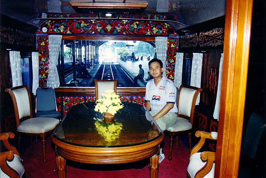 The car is named 'Nusantara' rail car. It is usually used for government duties, although it's also possible for public to use this car (as one of my friend told me) albeit with 'luxurious' price...!