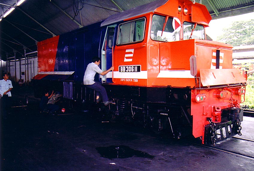 This BB30611 is one of a few locomotives which was lucky enough to be taken out from the storage and returned back to operational condition. It is seen being checked before it made a journey to its home base at Tanah Abang, Jakarta. |