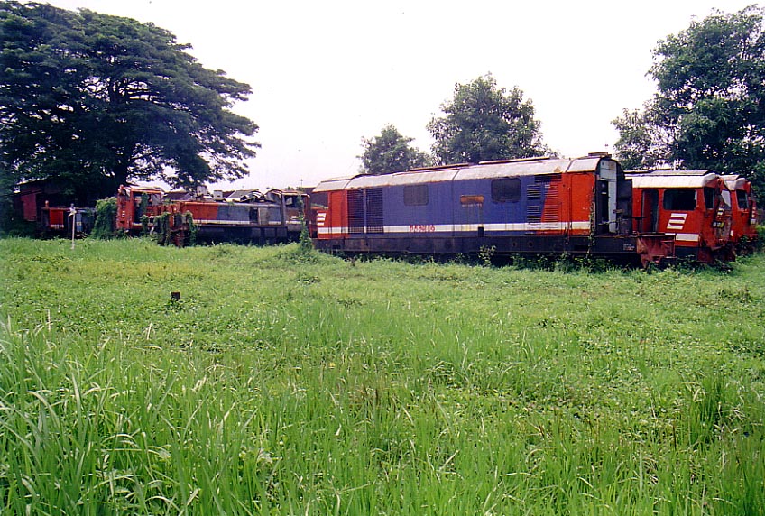 Not all of the stored locomotives in Pengok are destined for revival. Some had even had their wheels removed, like the locos in this picture. These hapless locos will be dissected pieces by pieces, where some of those components will be used as spare parts for another locos. |
