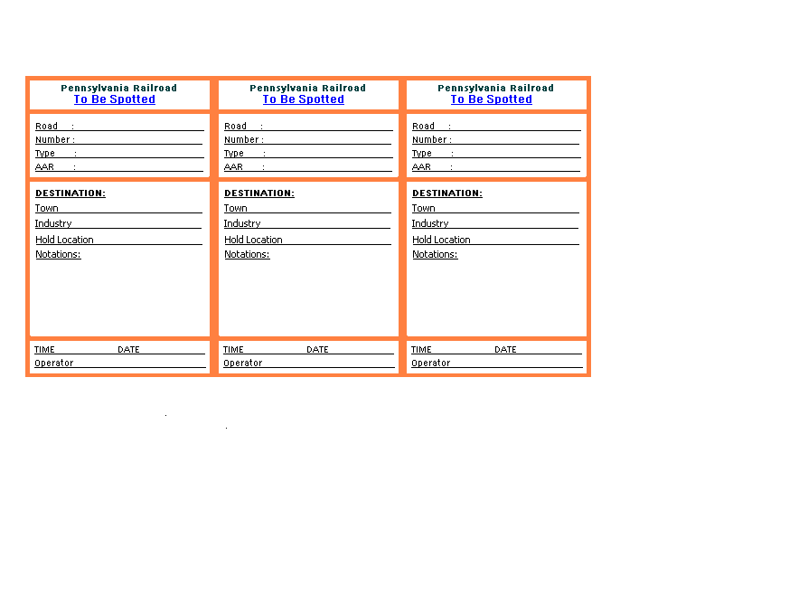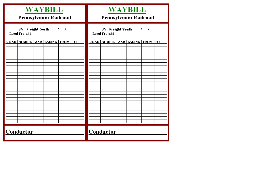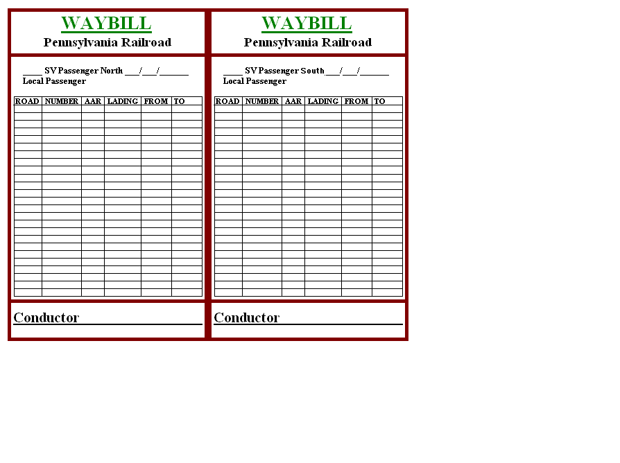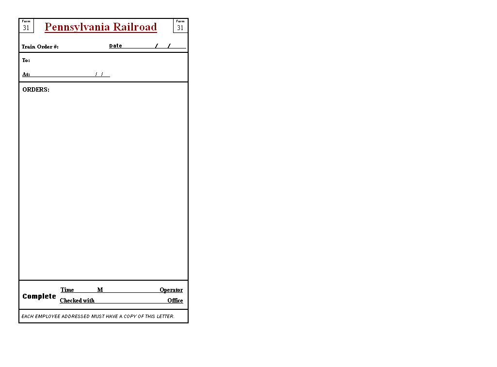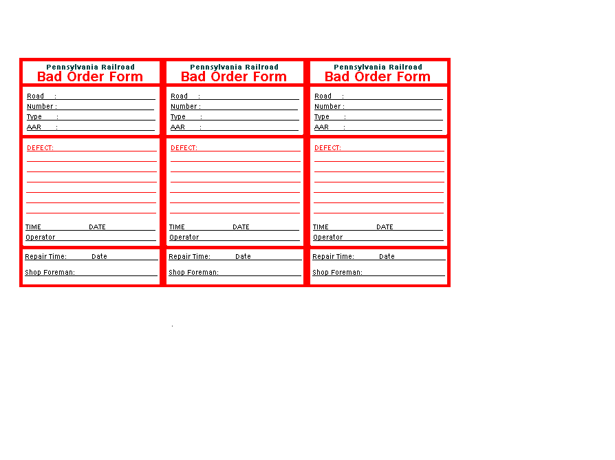 PRINTING INSTRUCTIONS: DO NOT right click on the thumbnail picture, as the whole page will print. Left Click on the form to enlarge it. When enlarged, right click on it and select print. You will see other options as well. These forms were made using MsPaint. Since these forms are for my layout, I would suggest that you save the forms to your own computer and by using MsPaint, or any .BMP editor, you can change the information on the forms to fit your own needs, as well as form size.