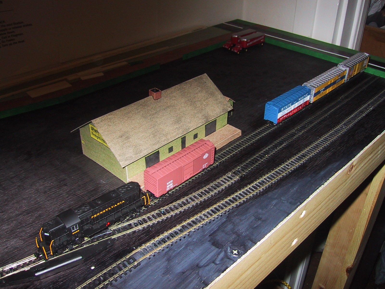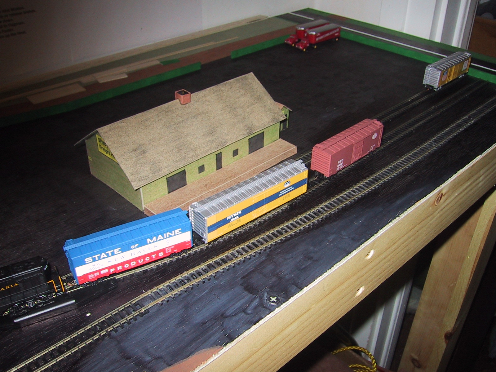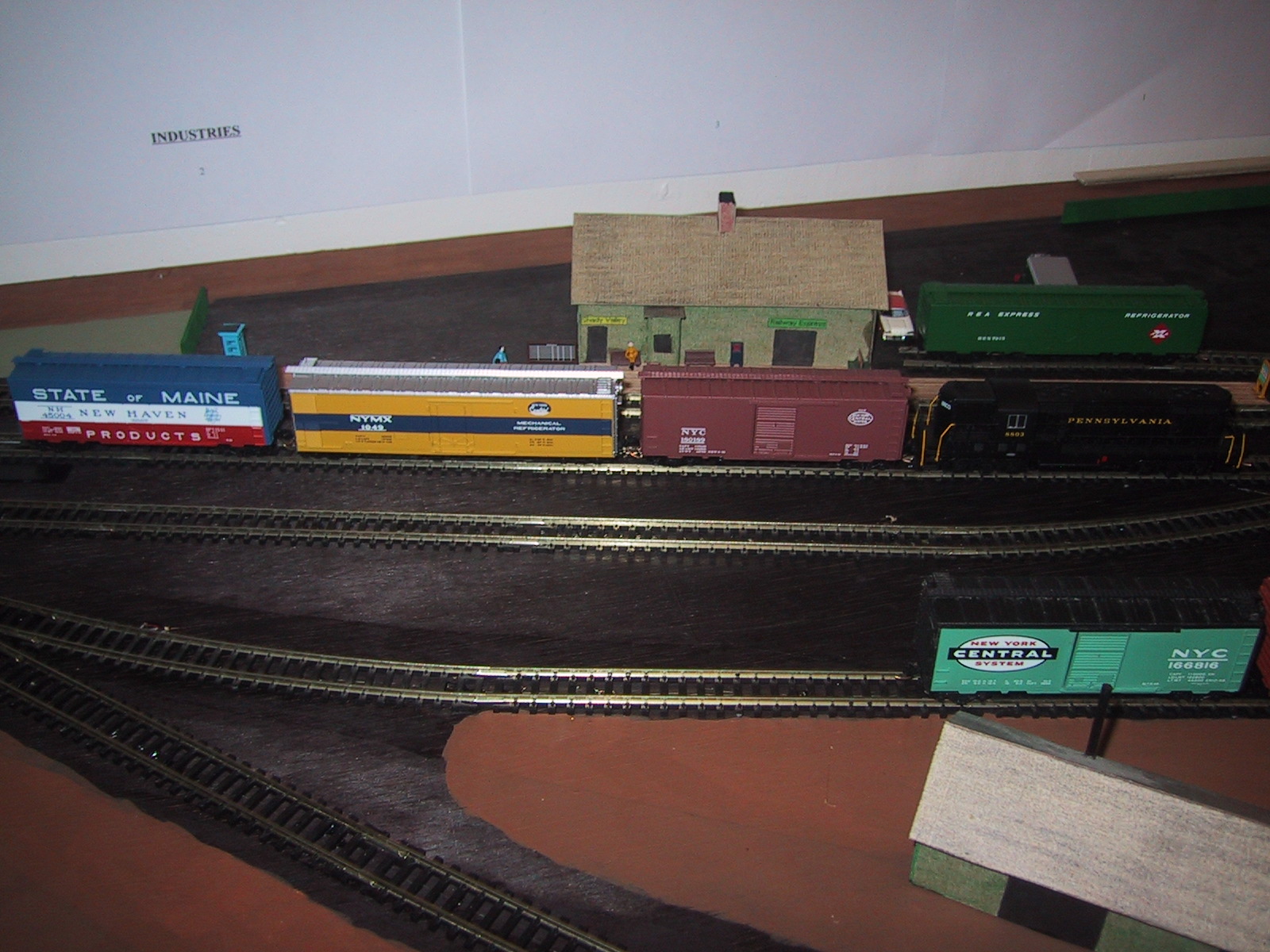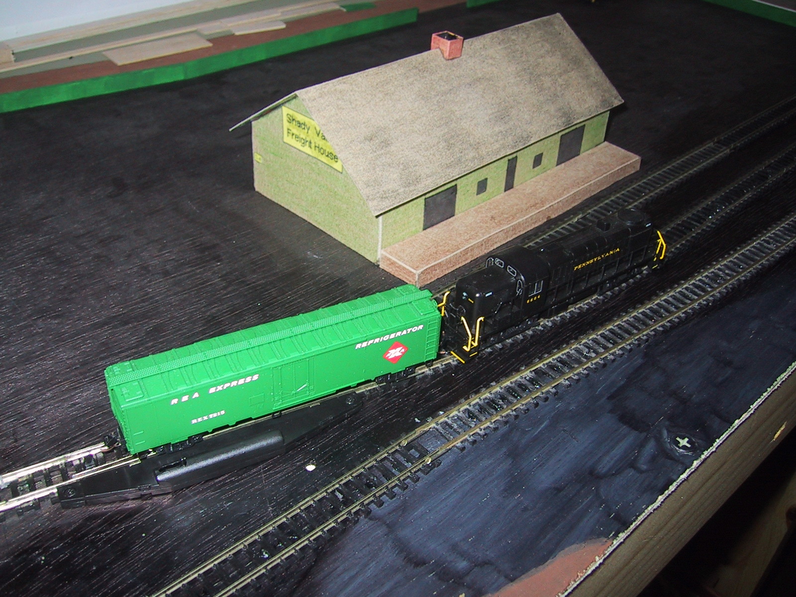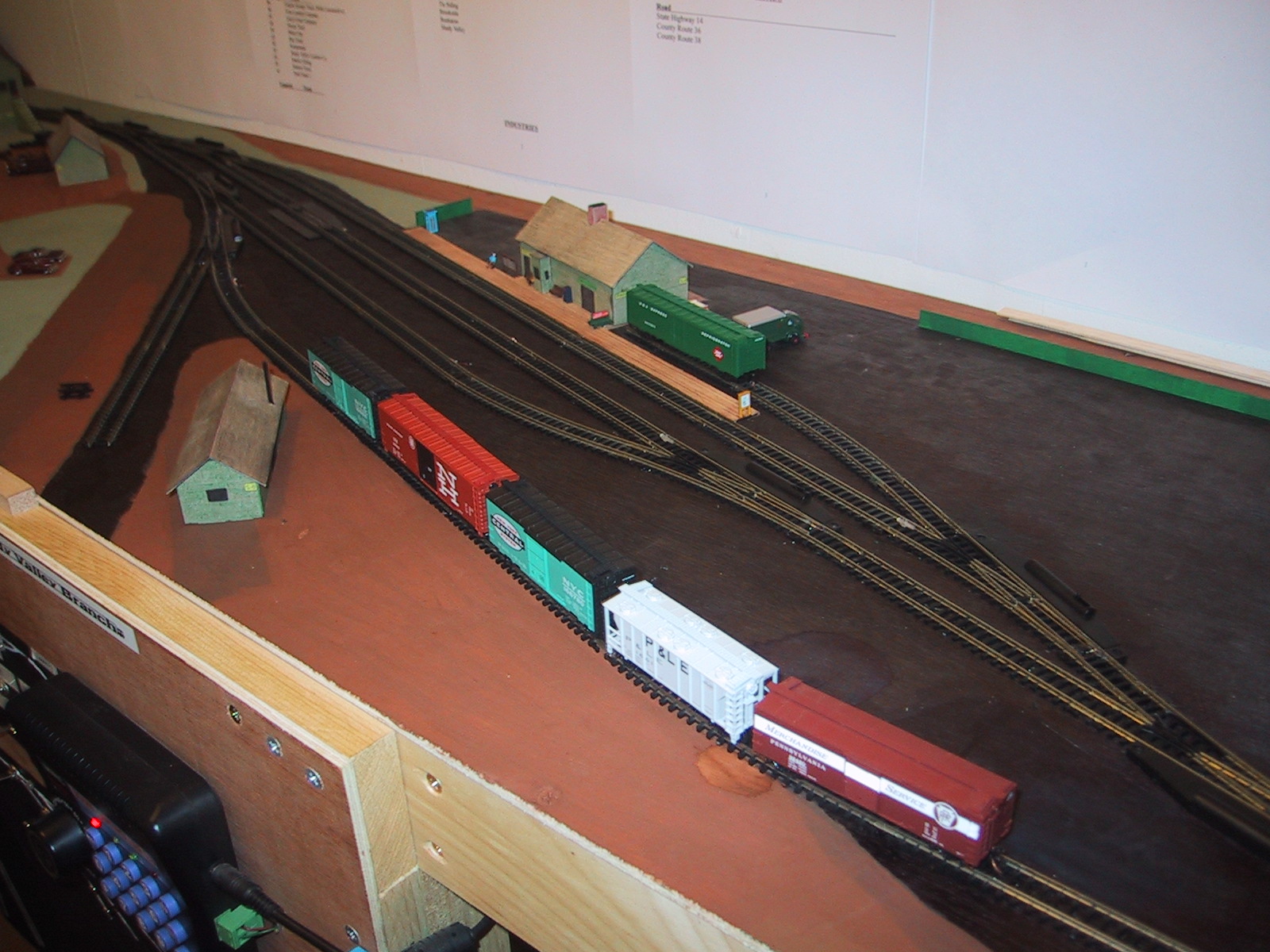 This picture shows the trains at the end of the previous days operation at Shady Valley Freight House.