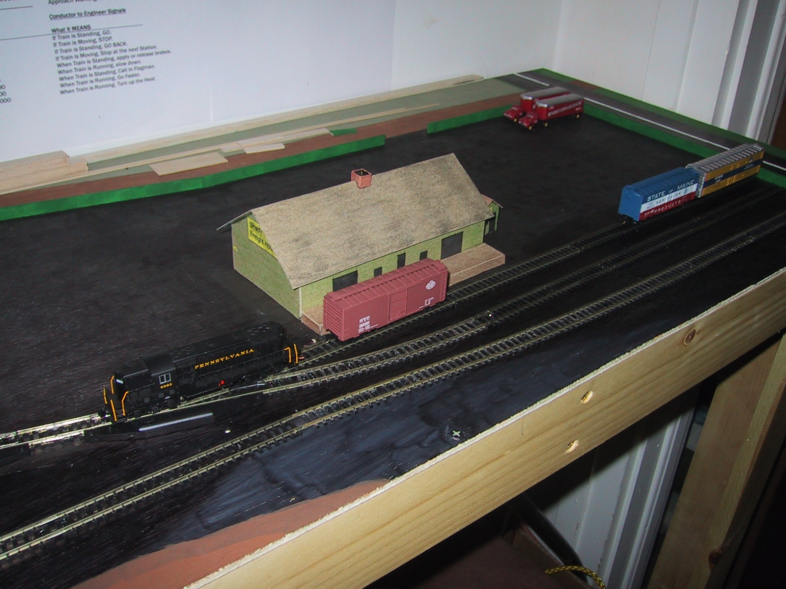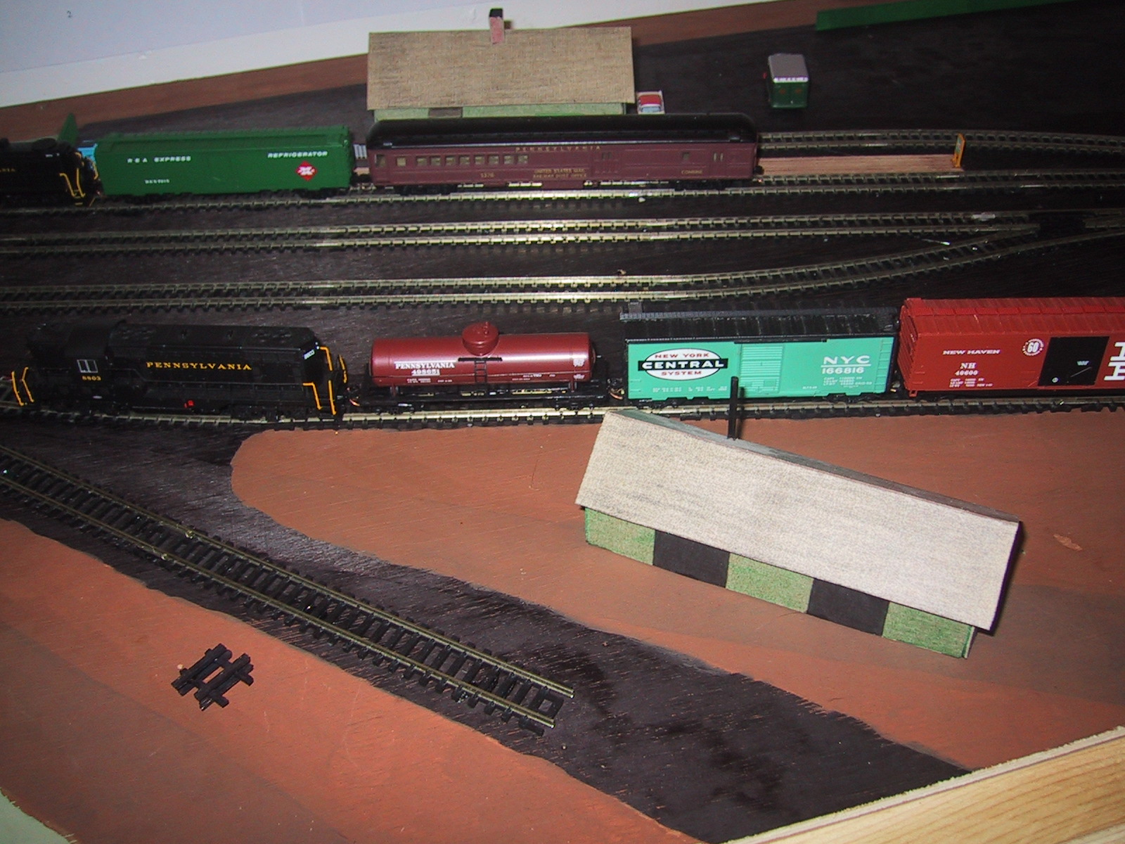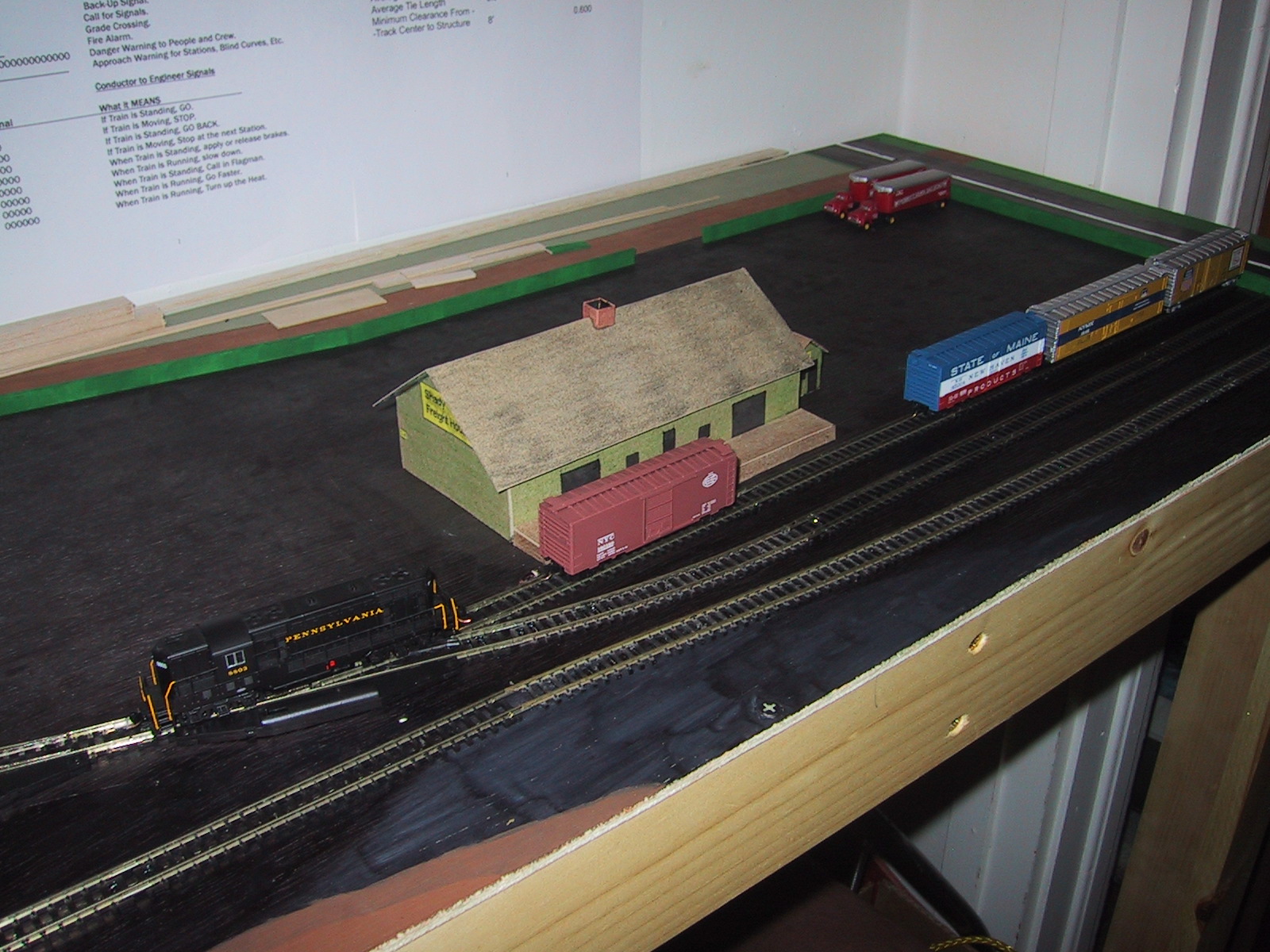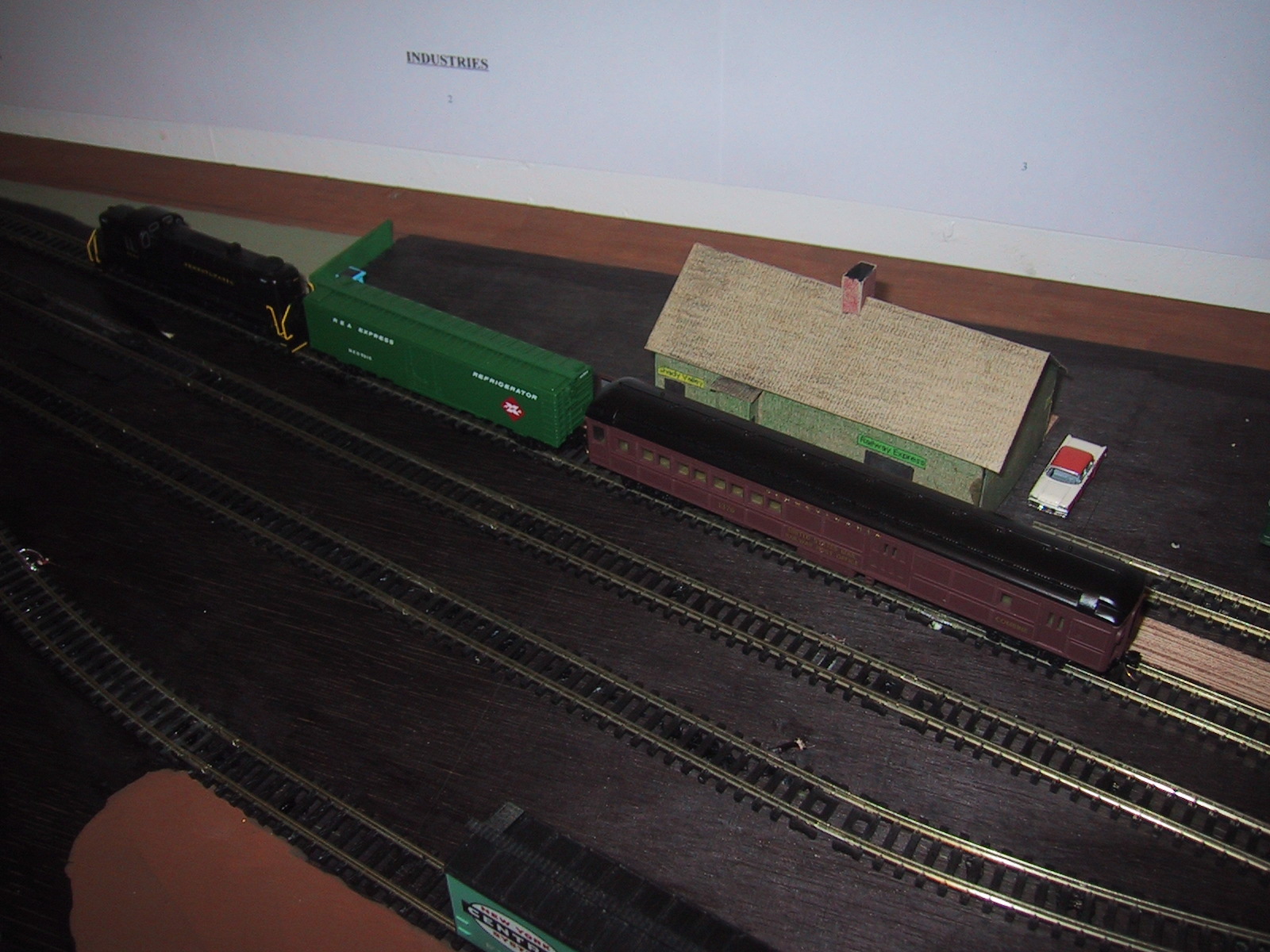 This picture shows the trains at the end of the previous days operation at Shady Valley Freight House.