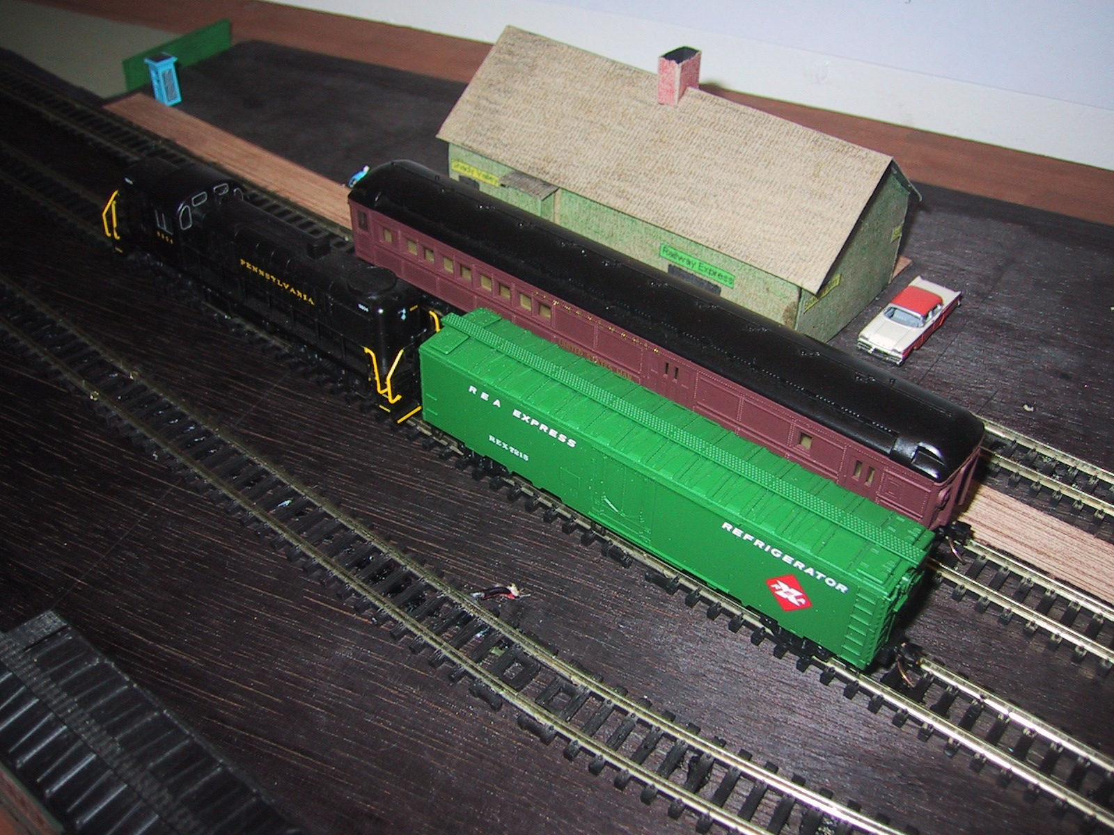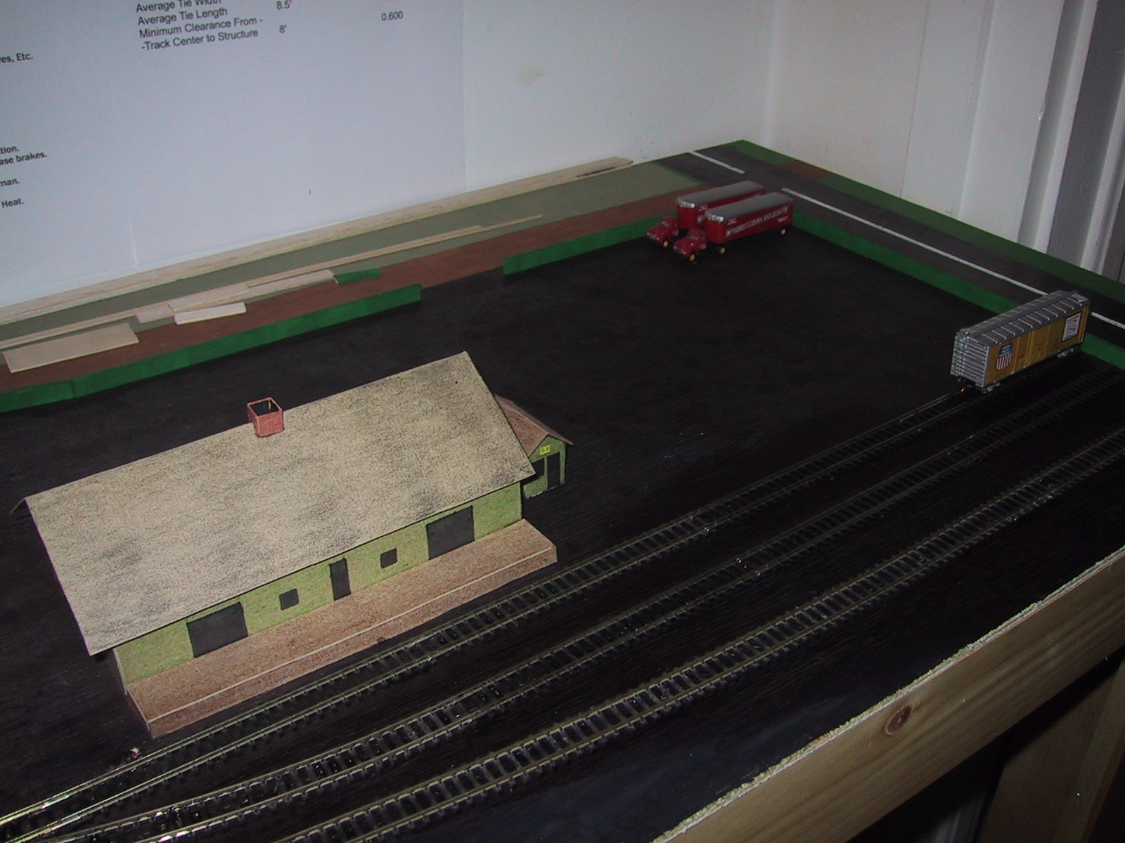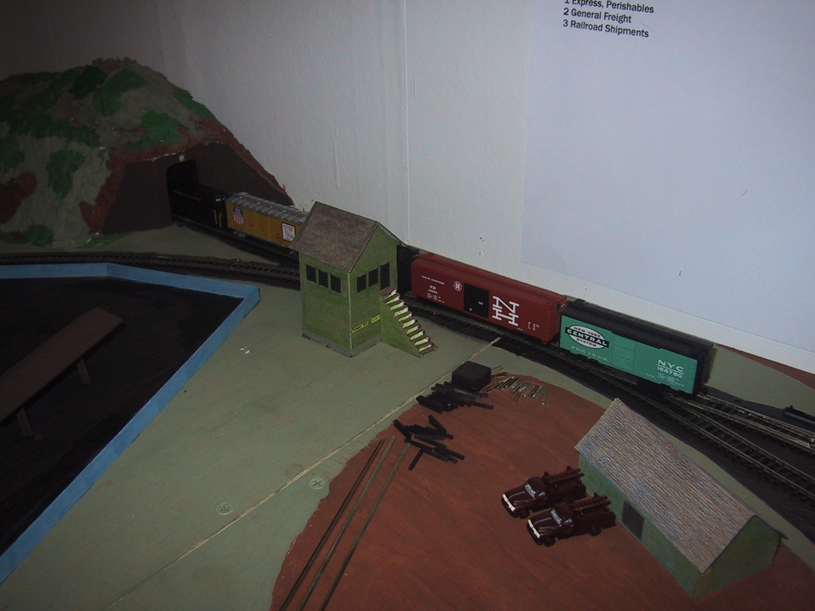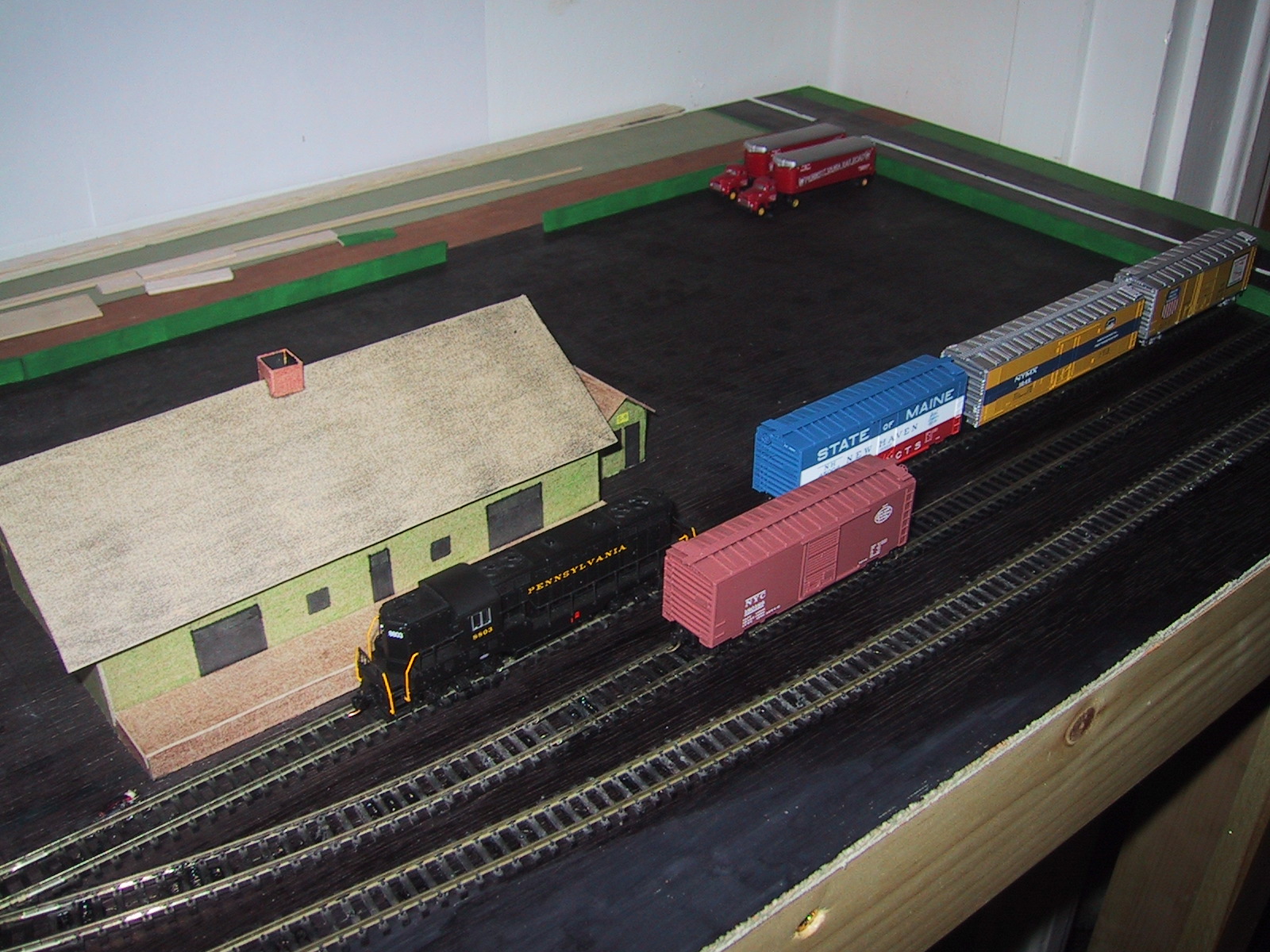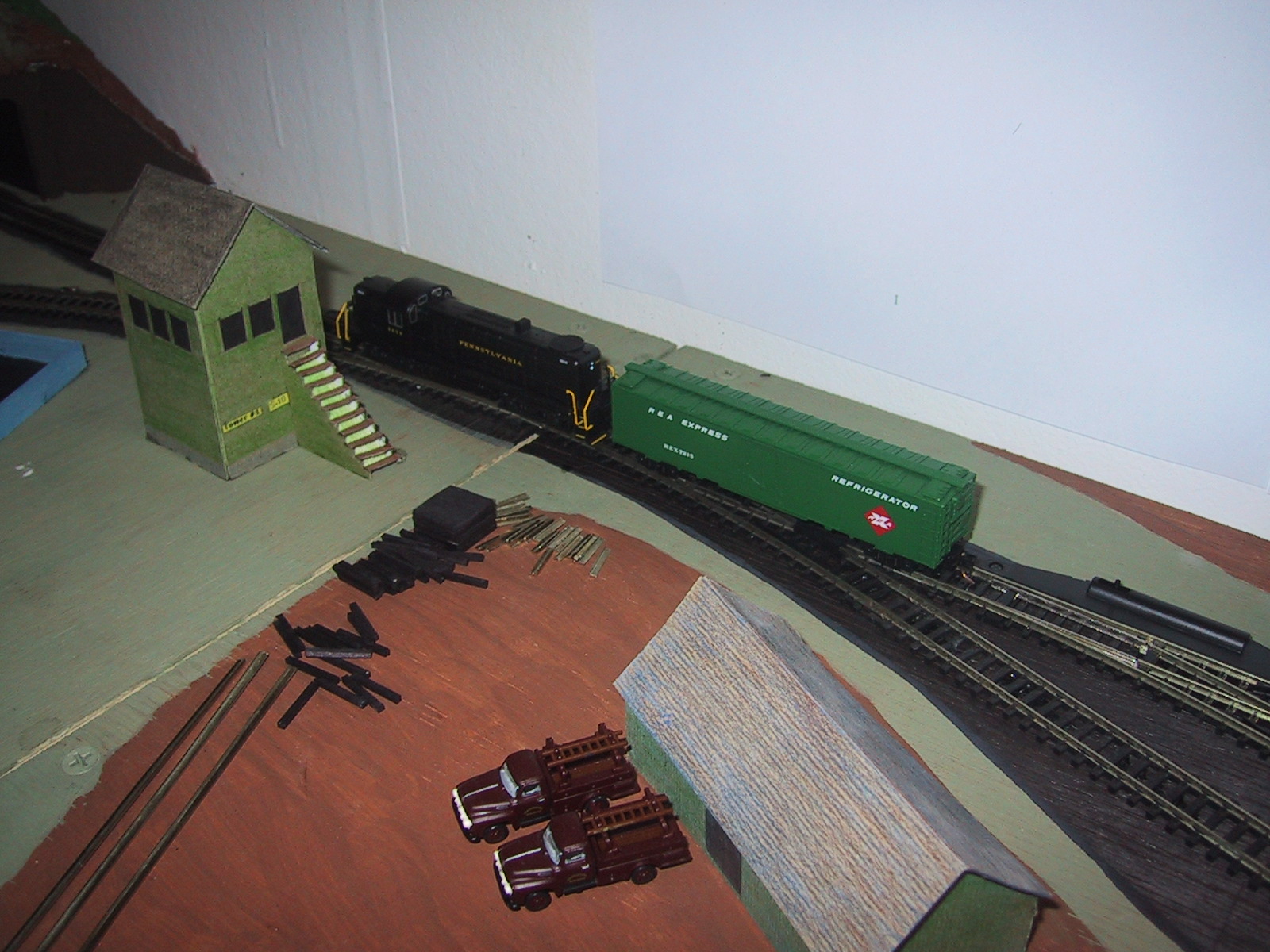 This picture shows the trains at the end of the previous days operation at Shady Valley Freight House.