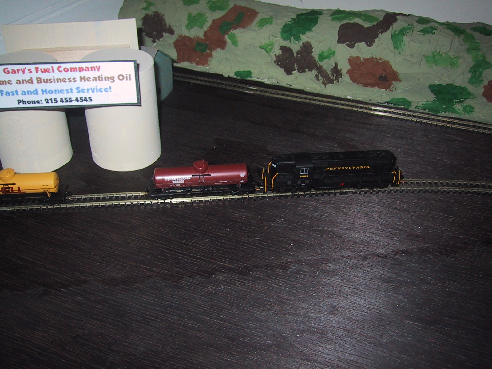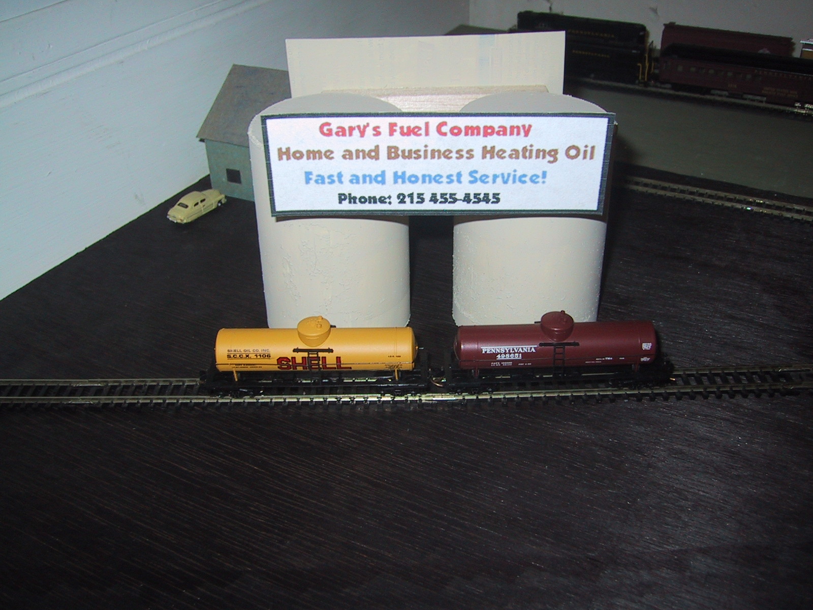 This picture shows the trains at the end of the previous days operation at Shady Valley Gary's Fuel Oil Co.