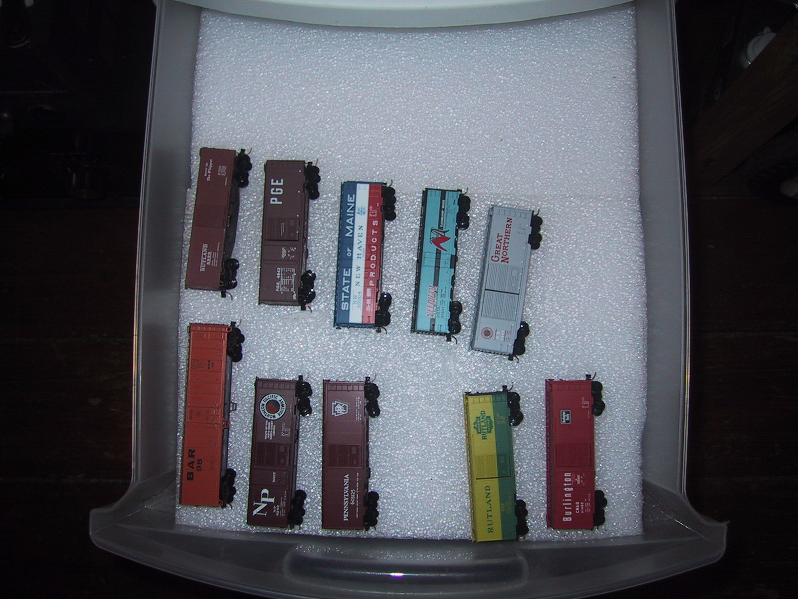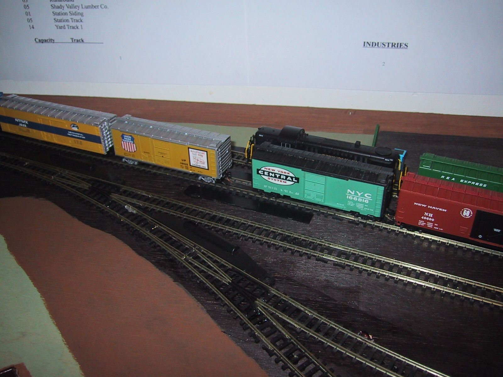 This picture shows the trains at the end of the previous days operation at the Shady Valley Yard.