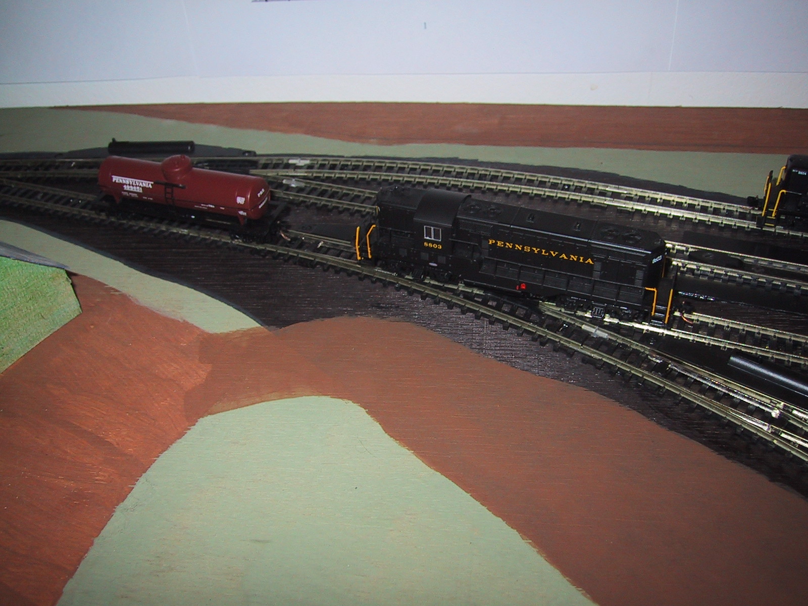 Both trains originate at Riverside where the main yard and engine facility is located. The trains make their run to Shady Valley and do their work North on the branch to Shady Valley and then return to Riverside, running on their schedule. I use road switchers because the engines run around at Shady Valley and "back" to Riverside, as there are no turning facilities at the end of the branch line.