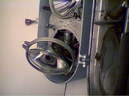 pulling out and lifting the spring-loaded latching knob. This allows the bulb retaining ring to be
