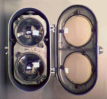 holds two bulbs, the motor and associated hardware connecting the motor shaft