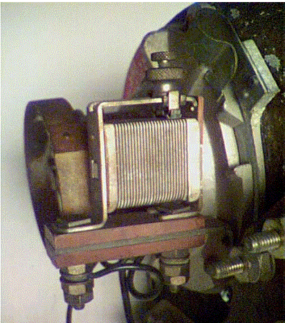 Above. Integral power resistor. The value of the resistor is adjusted by loosening and moving the top slide from right to left.