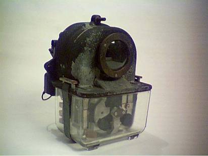 Above. Internal view of style H housing showing the back of the prism lens and the top and side mounting hardware for the internal unit. The mounting hardware in the H-2 unit is identical.