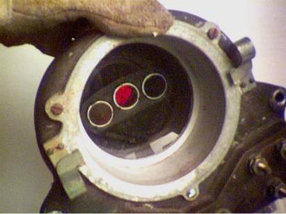 Closer view of the roundels. Often the green roundel has a crack in the center from top to bottom to allow for its expansion due to the greater light absorption of the green lens. |