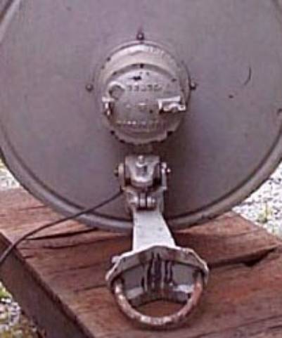 Above and to the left. Single aspect color light signal. Appears like a searchlight signal with characteristic ribbed background. Note the unique adjustment mechanism.. |