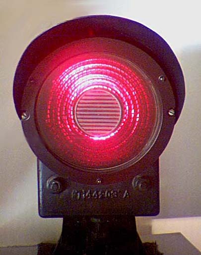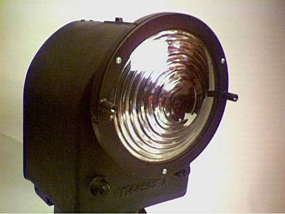 Above. H style signal with Phankill unit, inclined glass and visor removed. Note the special lens ring with internally threaded mounting studs and the outer doublet with a clear bullseye.
