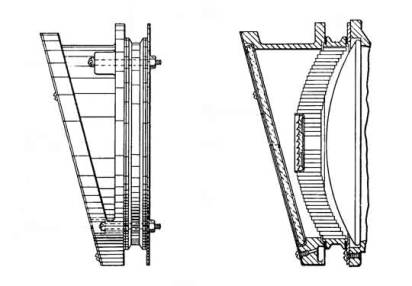 Above. View on left is the outside of the Phankill unit and inclined cover glass holder as shown (above left) mounted on the H style searchlight signal. View on right is a cross section of this assembly showing the honeycomb of the Phankill unit.