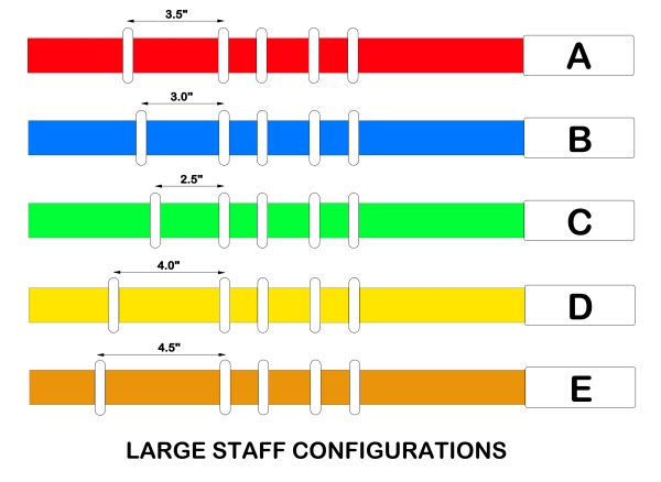 LARGE STAFFS The configuration is determined by the position of the 5th ring, as an additional aid the staffs are sometimes painted, however most of this paint doesn't survive in service.