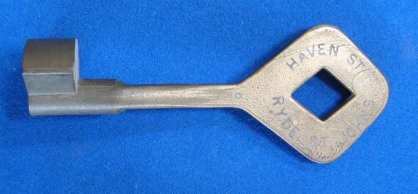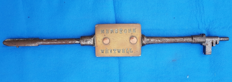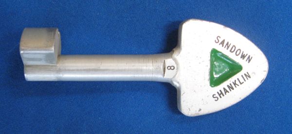 | During the summer period the staff section was shortened to Smallbrook -Brading Junction, the brass location caps were replaced accordingly. |