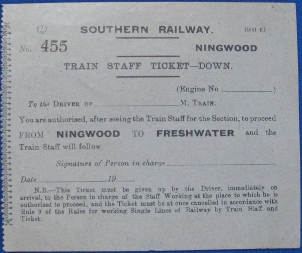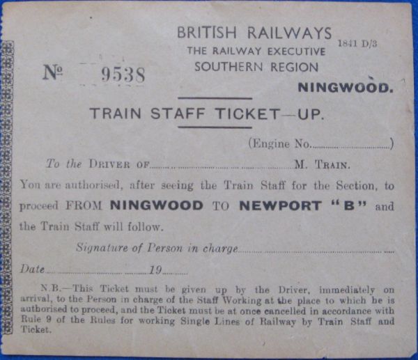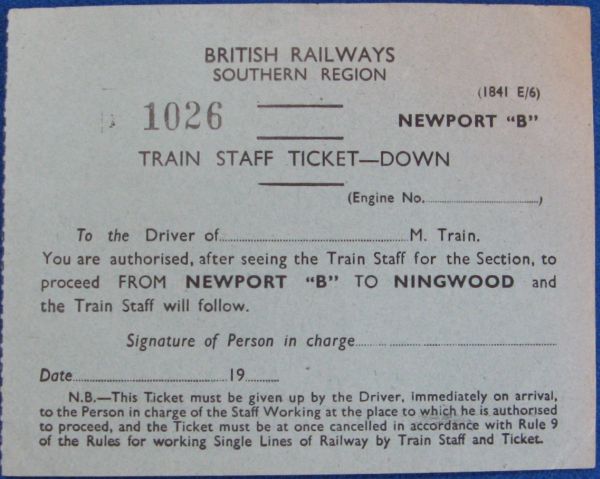 Paper train staff tickets for the line from Newport to Freshwater. |