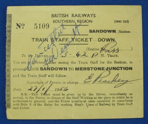 Ryde South - Haven Street, M type miniature staff, 'D' configuration. Just like the line to Brading, the staff section was shortened during the summer, and the caps on the staffs were changed for Smallbrook Junction - Haven Street. |