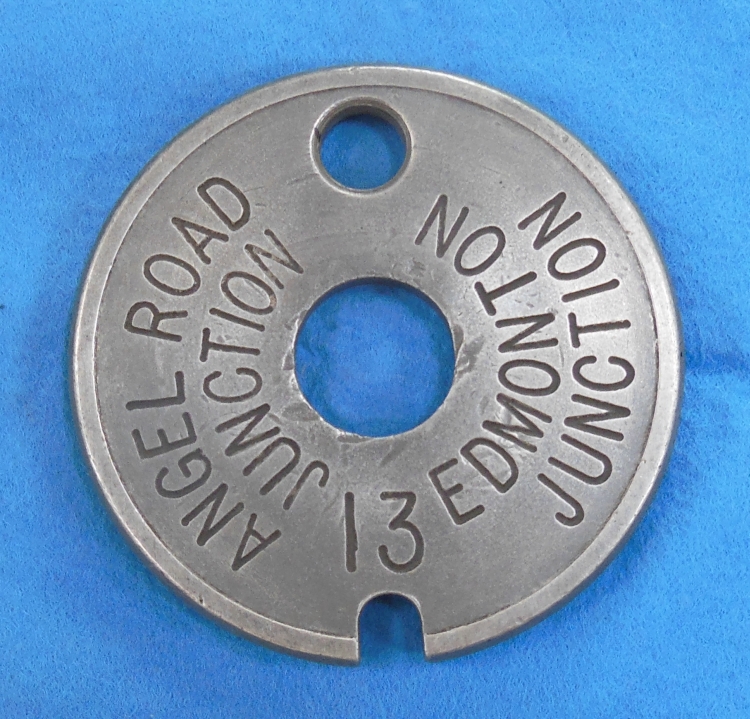Angel Road Junc - Edmonton Junc, Tyer No 6 alloy tablet. |