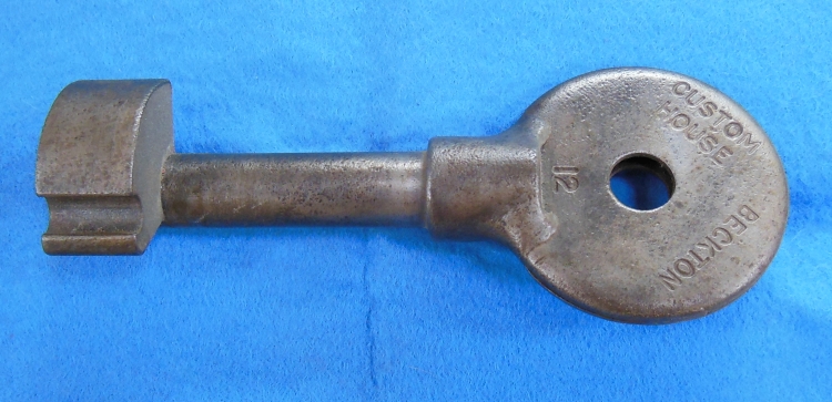 Custom House - Beckton, Tyer No 9 steel key token. |