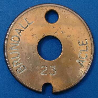 Brundall - Acle, Tyer No 6 brass faced iron tablet. |