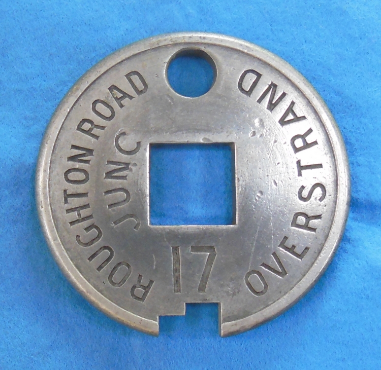 Roughton Road Junc - Overstrand, Tyer No 6 alloy tablet. The apparent unusual configuration is a non railway modification, as other tablets for this section have the conventional 'B' configuration notch. |