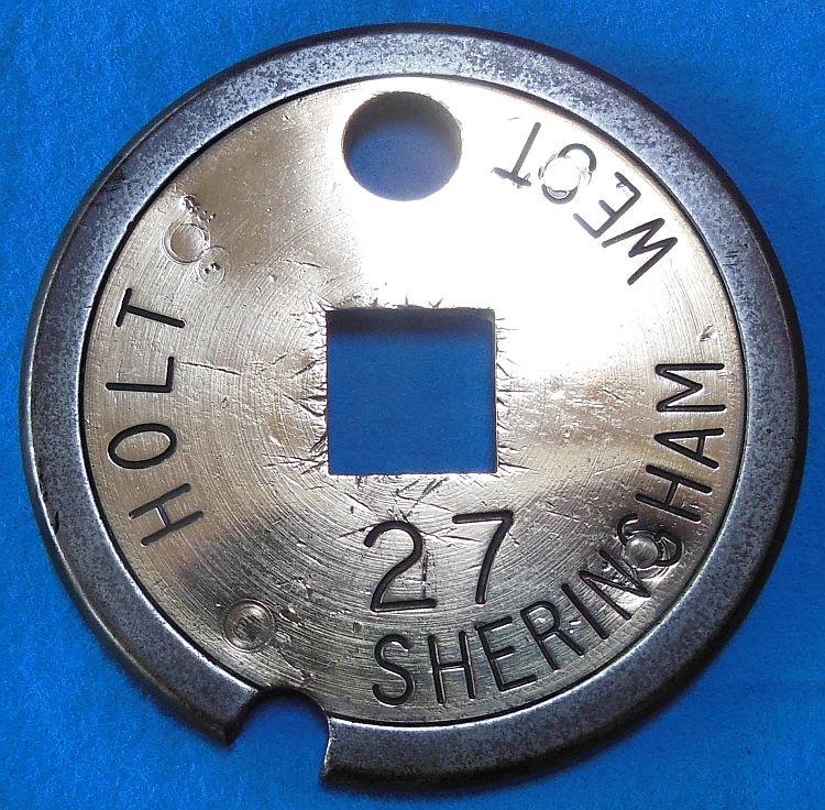Holt - Sherringham West, Tyer No 1 brass faced iron tablet |