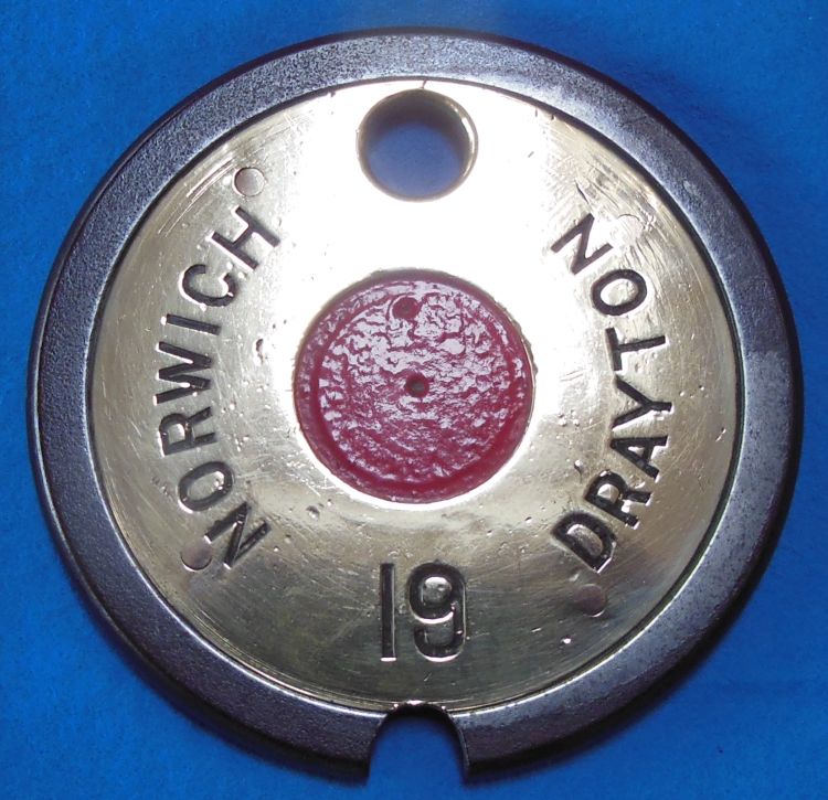Norwich - Drayton, Tyer No 1 brass faced iron tablet |