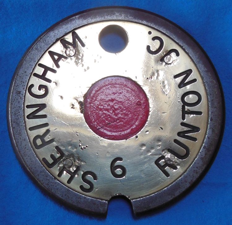 Sherringham - Runton Junction, Tyer No 1 brass faced iron tablet |