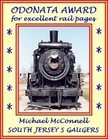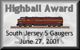 I am pleased to present you the Silver Highball Award for your South Jersey S Gaugers site. The site is very informative, well built, the photos are great and quick loading and I enjoyed my visit very much. Great job and keep up the excellent work. |