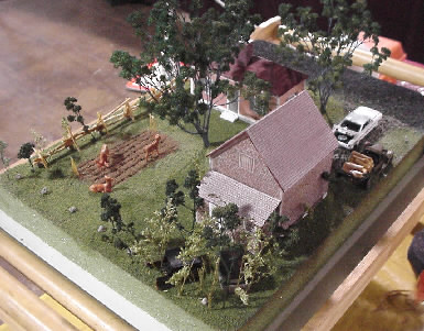A scenery section made by John during one of his clinics shows how to use simple materials to create a scene for S-Gauge. The buildings are color copies of an HO print blown-up to S, then glued to cardstock.