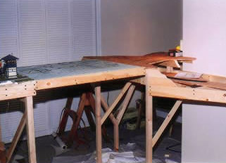 Greg Berndtson - Greg wanted to have a removable section to his layout to allow easy access to the center of the layout. The obvious solution was to make a lift-out section, but Greg didn't want to have the hassle of finding a place to store the lift-out. His solution is unique - he built a drop-down section that swings up under the layout.