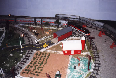 Charlie Bowen - has several 'scenes', this one being the wide open country. . .a farm in a rural area, complete with a Plasticville covered bridge.
