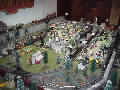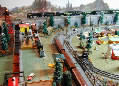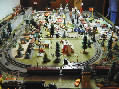 Larry's layout is the most consistent (from year-to-year) that I have seen. Each Holiday season Larry re-builds his layout using a railroad theme. One year it may be Santa Fe, the next B&O. This year it was Pennsy. All the other details, the city, vehicles, streets, people, etc. are positioned carefully according to archive photos.