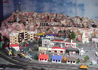 | The East side. The trains on the mountain are really really far away Flyer trains, they only just look like N-gauge. |