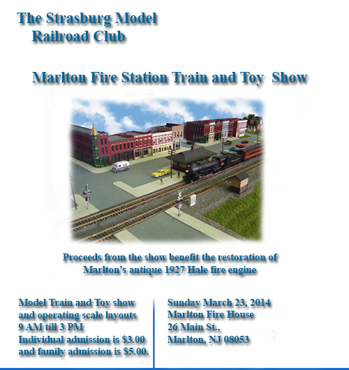 Strasburg Model Railroad Club annual club train show and sale. July 12, 2014. Hours are 10am to 3pm. Donation: $3.00 Per Person, $6.00 Per Family. Children 12 and under Free with adult.