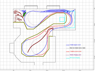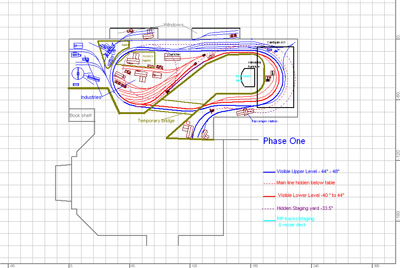 This is a first draft subject to change without notice as they say. For now, tracks will be Code 83 flextracks on the main lines and code 70 on all secondary tracks. Code 100 will be used for the staging area. I just might try my luck at handlaying tracks. I will do a module and if I get good at it, the rest of the layout will be handlaid.
