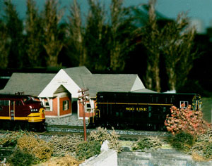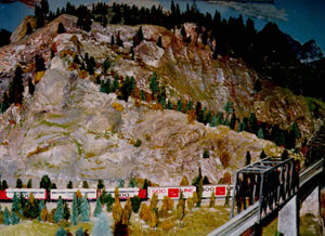 umpteenth time, GP7 # 382 is replacing it , assisting #416 in easing a line of freight cars down a hill.