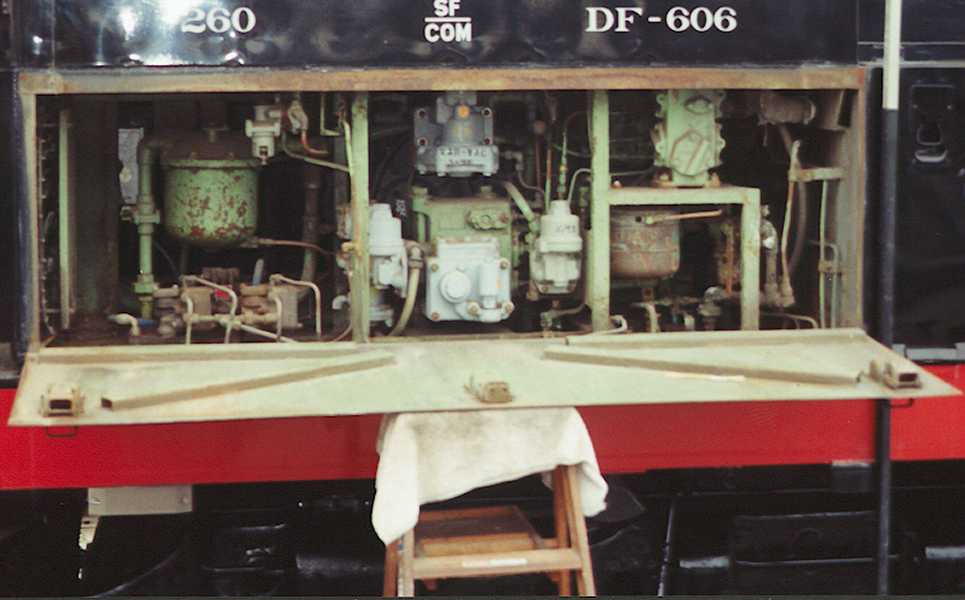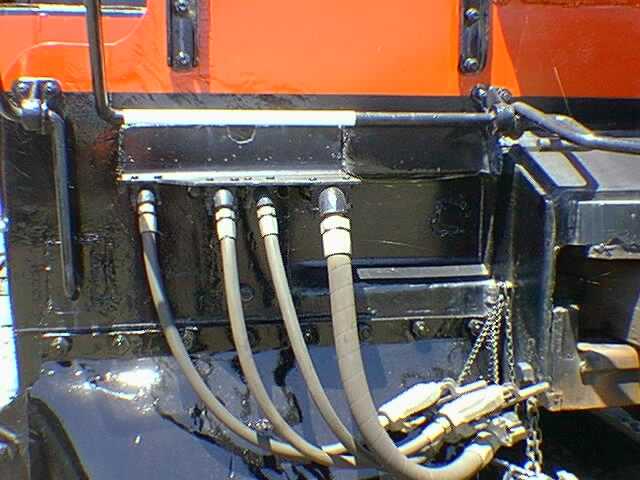 tanks, at the rear end of the locomotive. The blue hose seen coming straight