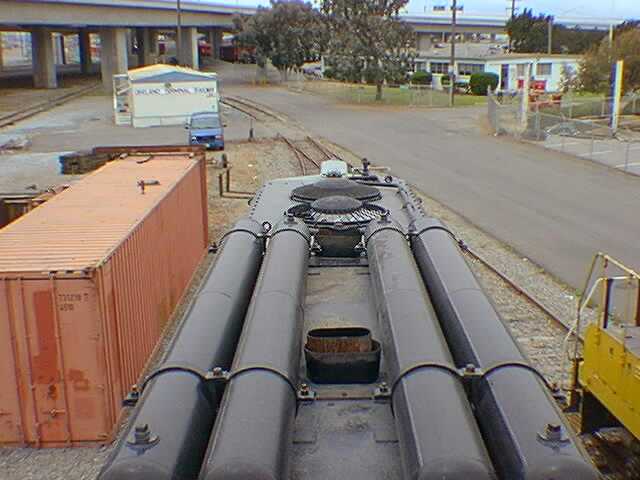 Note that on early GP9's, there are two 36" cooling fans at the rear