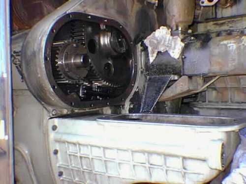 the blower and camshaft gear are visible in the photo. The blower bottom