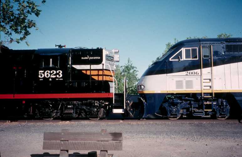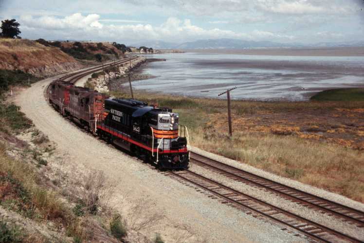 in orange. Western Pacific F7 913, Southern Pacific E9 6051 and